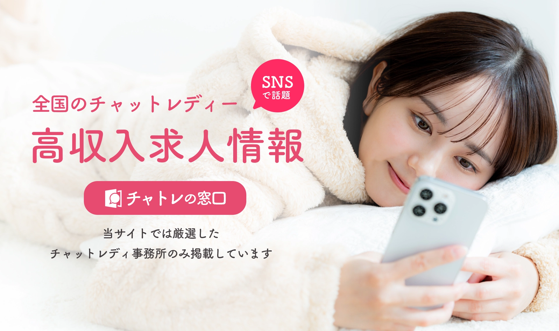 今すぐ体験登録・即日報酬GETも可能な求人もあり、 「すぐに始めたい」「少しでも早く収入がほしい」という方にもぴったりです。 勤務時間・報酬体系・サポート体制など、細かく比較して選べるのも 「チャトレの窓口」ならではの魅力です。